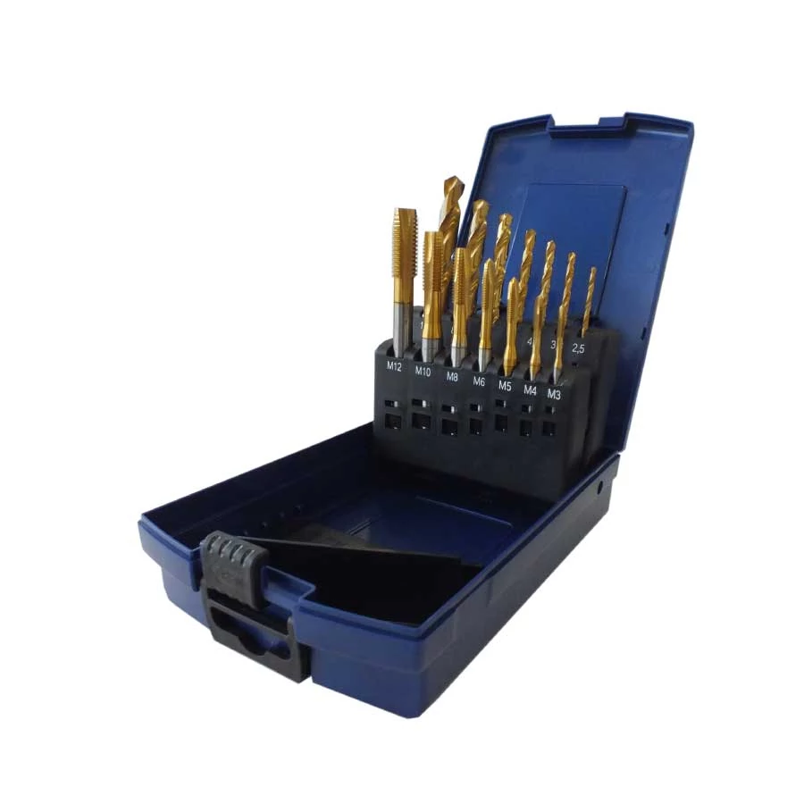 Menetfúró készlet HSS-E TIN 4011/4111 M3~M12 + magfurat fúrók 14db